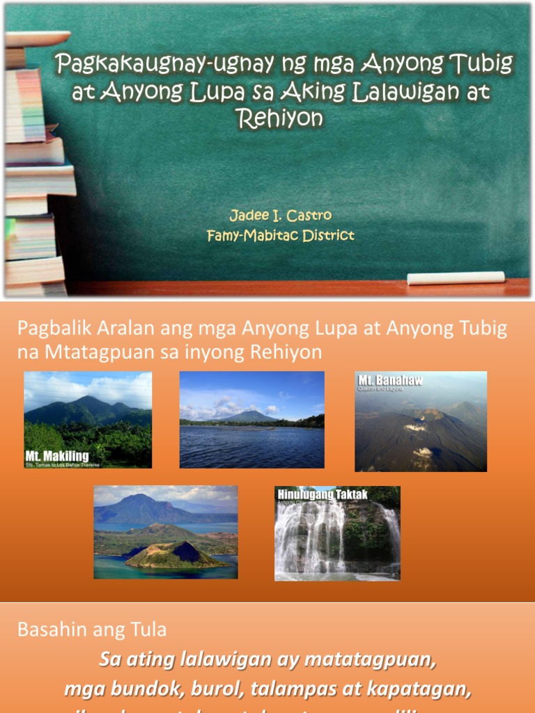 Pagkakaugnay Ugnayng Mga Anyong Tubig At Anyong Lupa Sa Lalawigan At Rehiyon