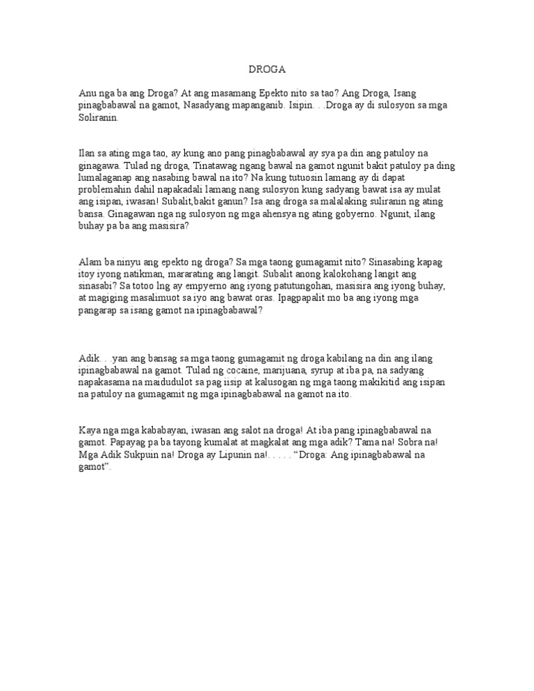 Research paper draft for arabyedx essay grading software. Kaya naman sinisikap ng pamahalaan na masugpo ang transaksyon nito maging ang mga taong sangkot dito upang mabawasan ang mga napeperwisyo at maging ang krimen na dulot nito. Maaaring makaapekto ang droga sa isip lamang ng tao o sa katawan ng.