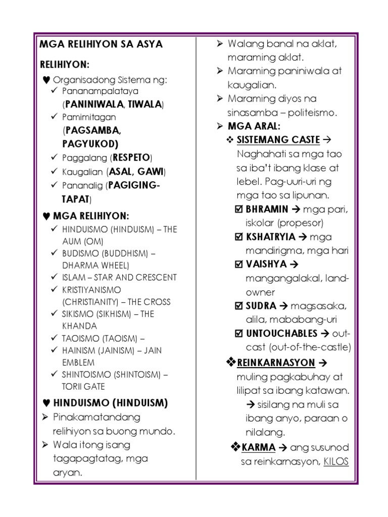 Grade 7 4th Quarter Ang Asya Sa Sinaunang Panahon Mga Relihiyon