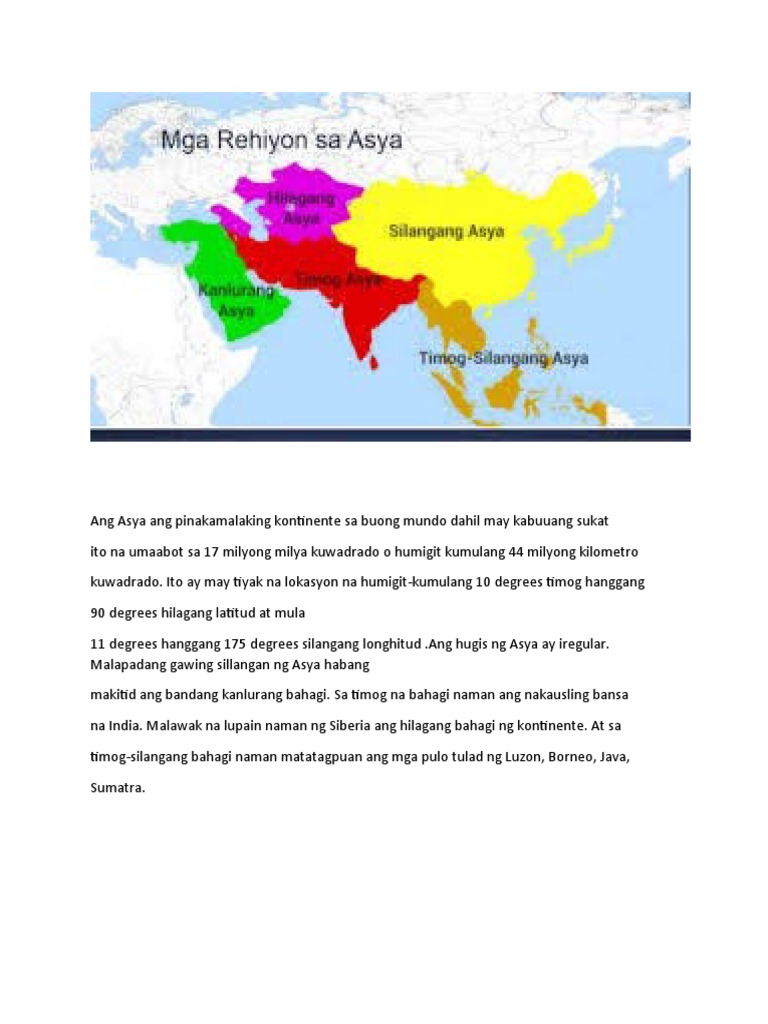 852017 Ang Kanlurang Asya ang rehiyong pinagtatagpuan ng hangganan ng tatlong mahahalagang kontinente sa daigdigang Africa Asya at Europa. 7152005 Ang Kanlurang Asya ang rehiyong pinagtatagpuan ng hangganan ng tatlong mahahalagang kontinente sa daigdigang Africa Asya at Europa. 292016 Kanlurang Asya 16 na bansa ang bumubuo rito Saudi at Iran ang pinakamalaki sa mga ito Mainit ang temperatura sa rehiyong ito 38.