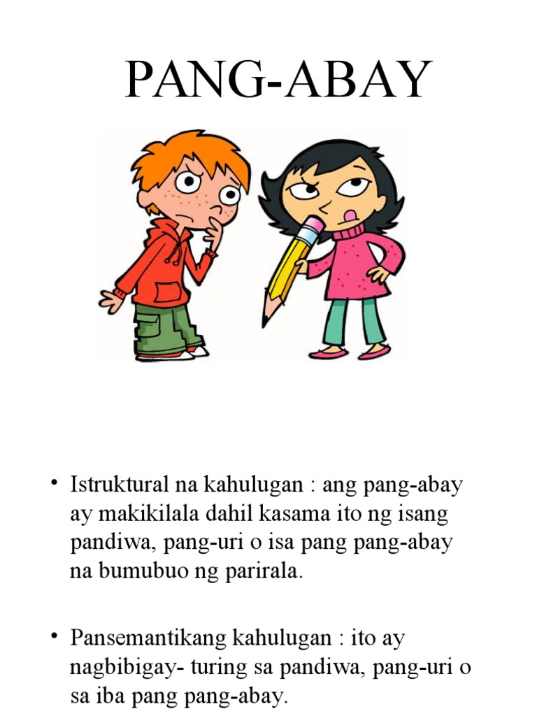 Si Roy ay dahan-dahang umupo sa silya. Bumili ako ng sapatos kay Nora. 10222013 The three pdf worksheets below are about Filipino adverbs mga pang-abay.